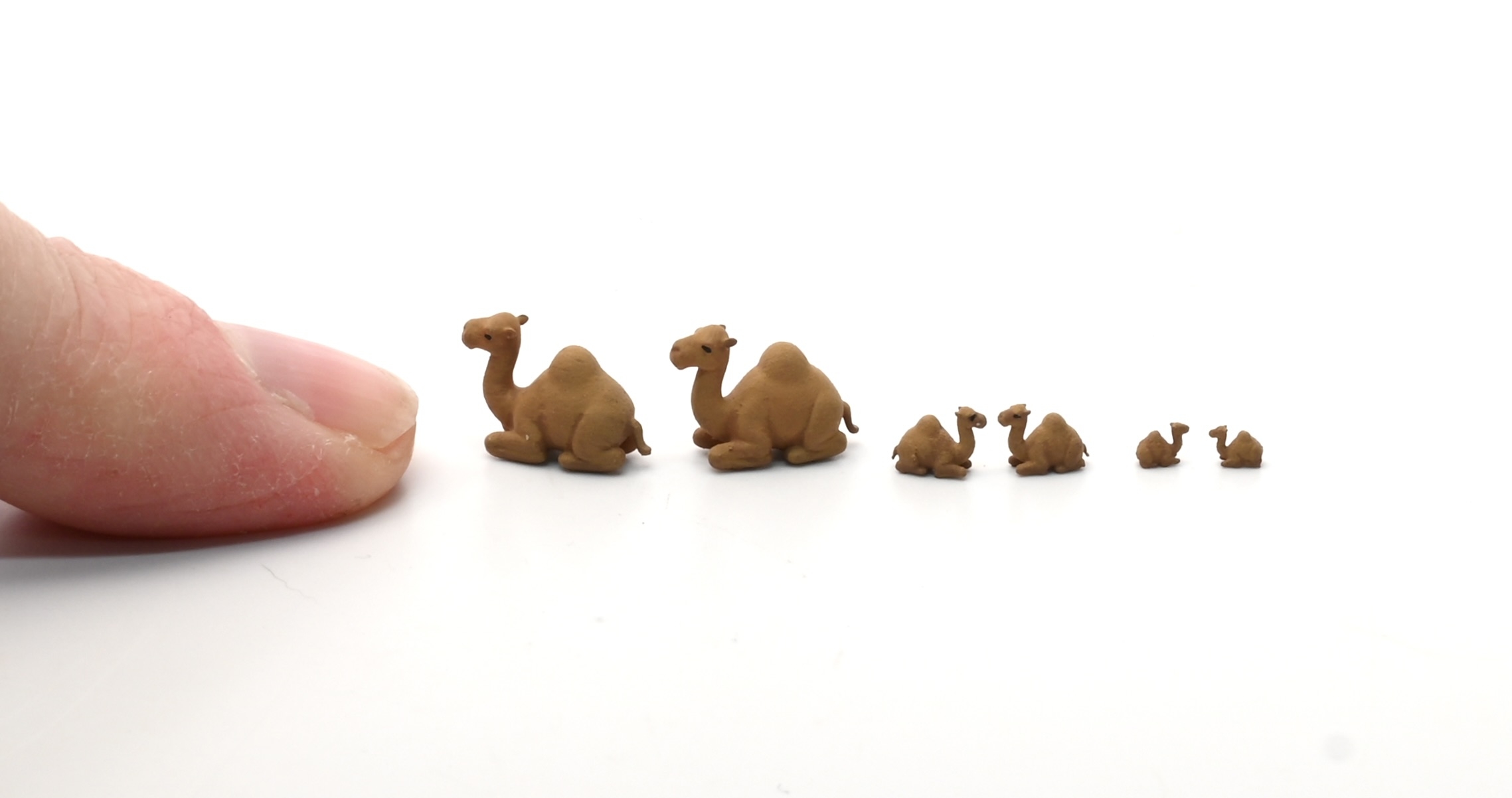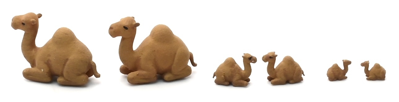 These are adorable camels that go perfectly with the Christmas Nativity sets. You get two in this kit and you can choose your scale. They re 3D printed and come with directions on how to paint.